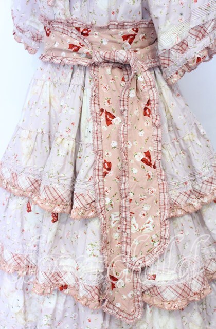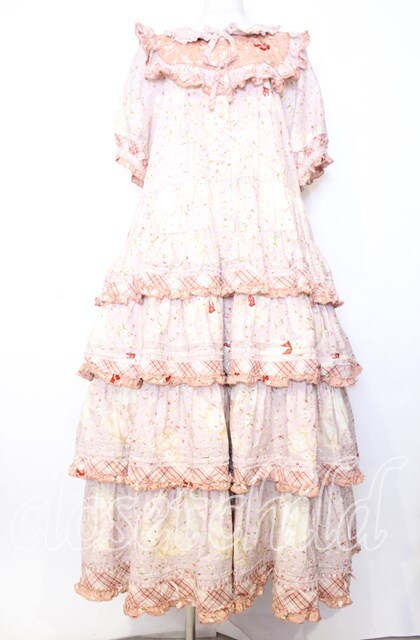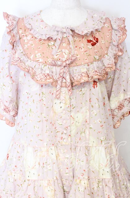 PINK HOUSE / バラ園うさぎプリントパッチワークワンピース ピンク O-25-12-05-011-LO-OP-IG-OS