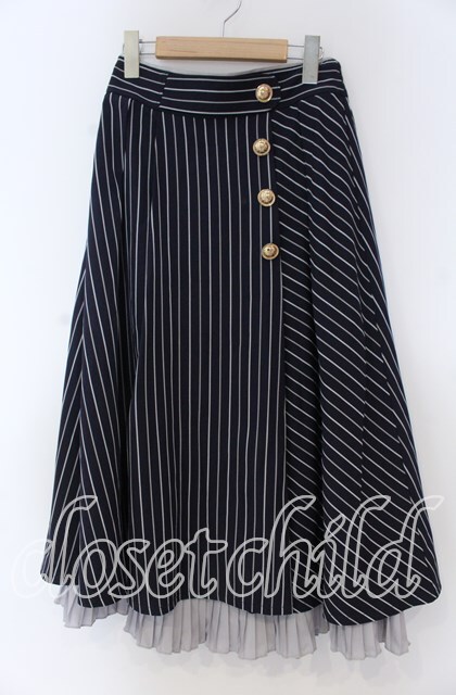 axes femme / ストライプ柄ミディスカート F ネイビー O-25-12-05-1029-AX-SK-OW-OS