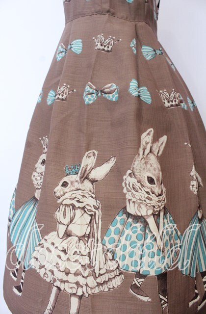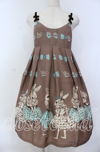 Emily Temple cute / ラビットバレリーナプリントノースリーブワンピース ブラウン O-25-12-05-1009-ET-OP-OW-OS