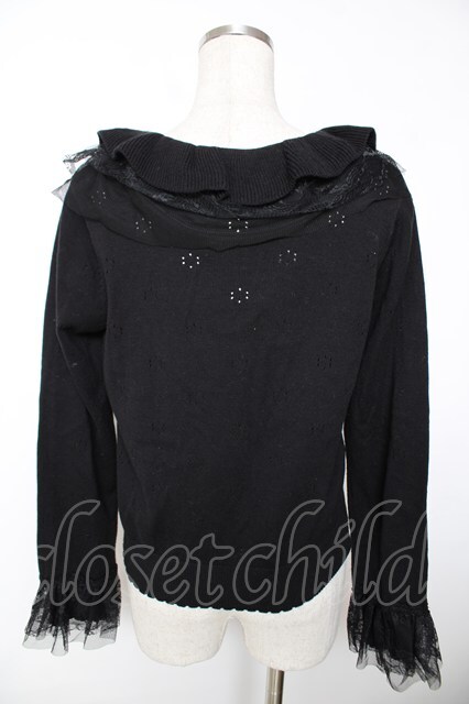 axes femme / フリルレースニットカーデ M 黒 Y-25-12-05-062-AX-TO-SZ-ZY