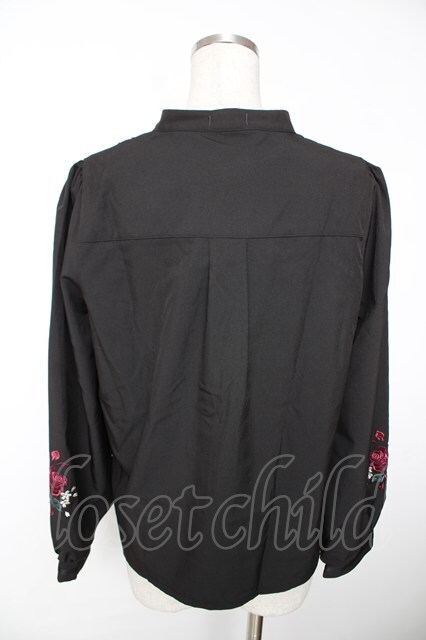 axes femme / 袖刺繍×ヨークレースブラウス F 黒 Y-25-12-05-064-AX-BL-SZ-ZY
