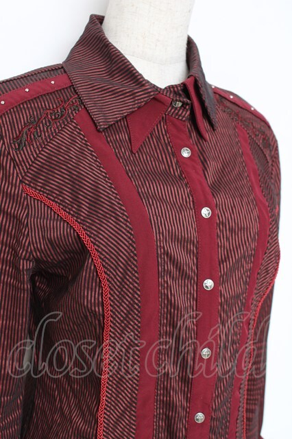 Ozz Croce / 二重襟ストライプスナップボタンシャツ エンジ Y-25-12-05-088-OO-BL-SZ-ZY