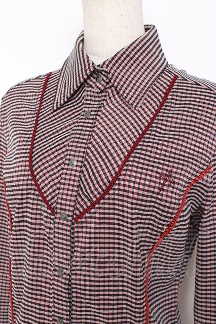 Ozz Croce / クロス刺繍チェック柄シャツ 赤 Y-25-12-05-089-OO-BL-SZ-ZY