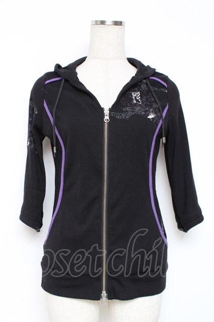 Ozz oneste / 金魚×朝顔刺繍五分袖パーカー 黒 Y-25-12-05-094-OO-TO-SZ-ZY [2100070000051984-Y-25-12-05-094-OO-TO-SZ-ZY]
