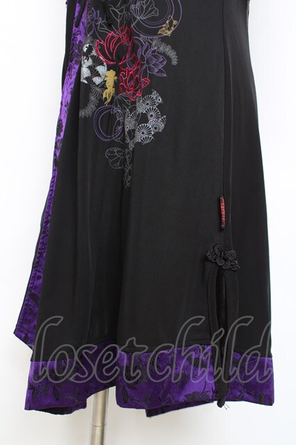 Ozz oneste / 和チャイナワンピース 黒×紫 Y-25-12-05-104-OO-OP-SZ-ZY [2100070000051989-Y-25-12-05-104-OO-OP-SZ-ZY]