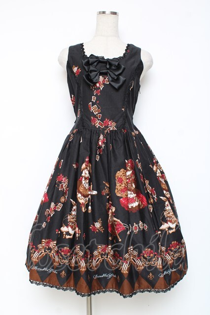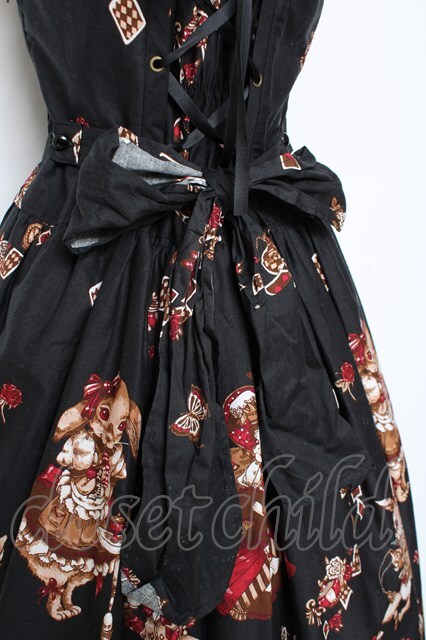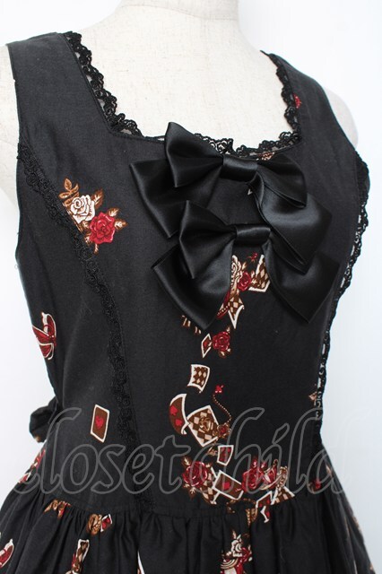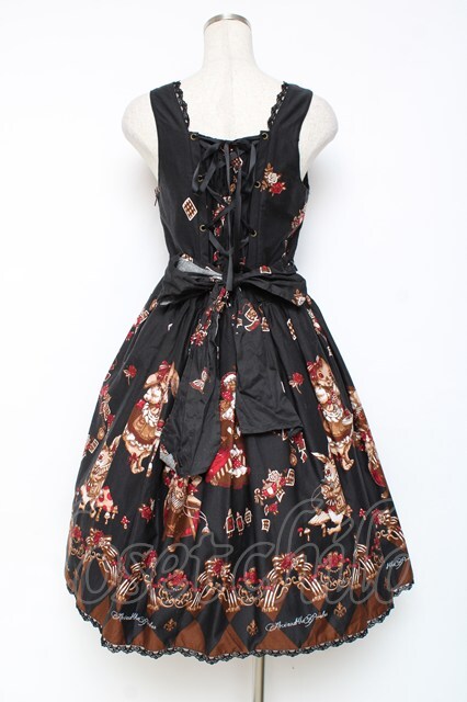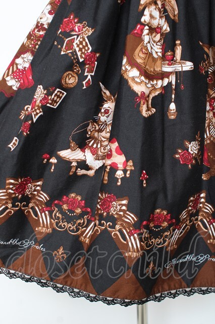 ALICE and the PIRATES / ワンダーラビットのマジカルトランプティーパーティ柄ジャンパースカートセット 黒 Y-25-12-05-130-PA-OP-SZ-ZY