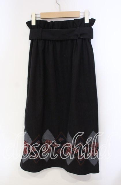 axes femme / ステッチ刺繍起毛スカート クロ O-25-12-06-064-AX-SK-IG-OS
