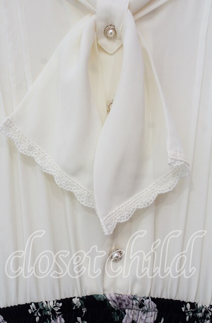 axes femme / リボン付レイヤード花柄ワンピース アイボリー×クロ O-25-12-06-063-AX-OP-IG-OS [2100080000067144-O-25-12-06-063-AX-OP-IG-OS]