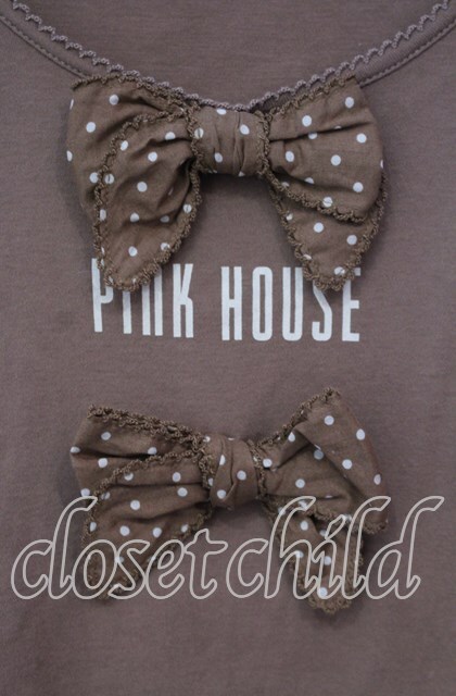 PINK HOUSE / 水玉リボンモチーフ付きカットソー ショコラ O-25-12-06-024-LO-TO-OW-OS