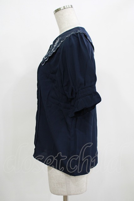 axes femme POETIQUE / ブーケ刺繍スカラップ襟ブラウス M ネイビー H-25-12-12-1055-AX-BL-NS-ZH [2100030000080460-H-25-12-12-1055-AX-BL-NS-ZH]