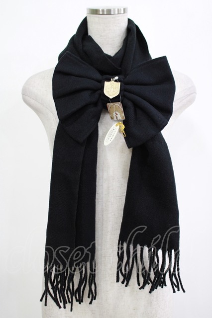 Amavel / プレート付きリボンストール ブラック H-25-12-12-1074-CA-ZA-NS-ZH
