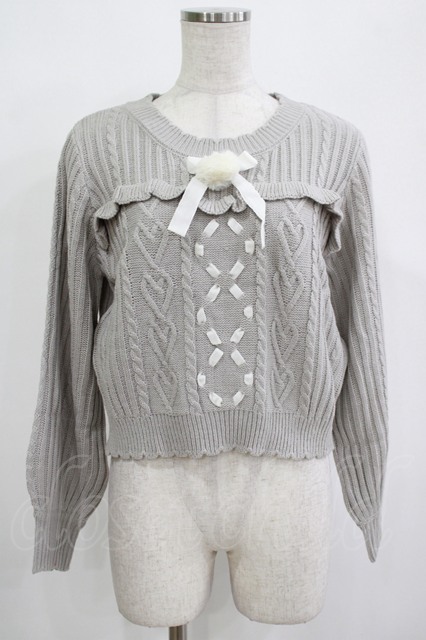 Amavel / ハートケーブルレースアップニットプルオーバー Free グレー H-25-12-12-1060-CA-TO-NS-ZH