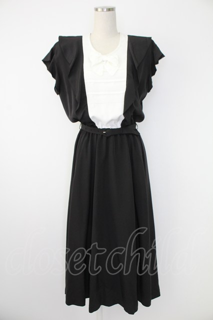 INGEBORG / ヨーク切り替えフリルワンピース クロ×シロ T-25-12-07-023-LO-OP-OW-ZT [2100080000058119-T-25-12-07-023-LO-OP-OW-ZT]