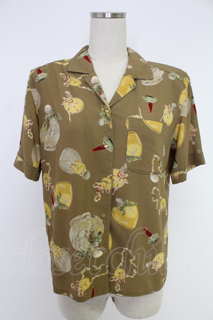 KANEKO ISAO / クチナシ香水瓶柄ブラウス カラシ T-25-12-10-005-EL-BL-OW-ZT [2100080000060845-T-25-12-10-005-EL-BL-OW-ZT]