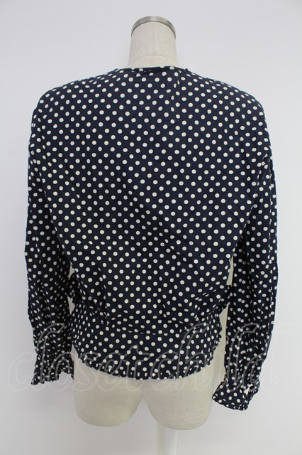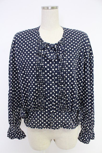 INGEBORG / 3つリボン水玉ブラウス ネイビー×シロ T-25-12-10-009-LO-BL-OW-ZT