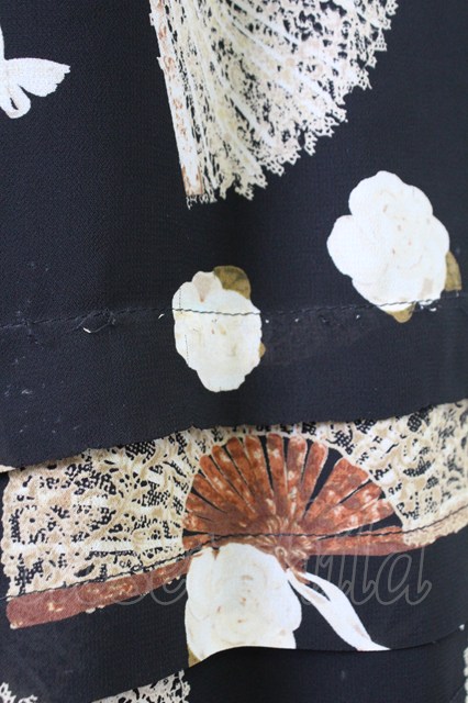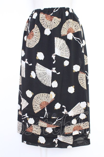 KANEKO ISAO / カメリア&扇子柄スカート クロ T-25-12-10-021-EL-SK-OW-ZT [2100080000060840-T-25-12-10-021-EL-SK-OW-ZT]