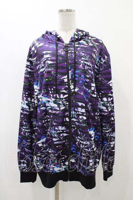 NieR Clothing / 総柄ZIPパーカー 黒 H-25-12-14-1058-PU-TO-KB-ZH