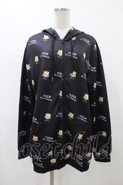 NieR Clothing / 総柄ZIPパーカー 黒 H-25-12-14-1060-PU-TO-KB-ZH