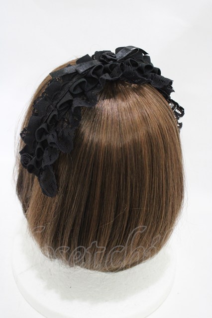 MARBLE / 2WAYサテンバラ付きタックプリーツチョーカー/ヘッドドレス ブラック×ブラック H-25-12-14-1002-GO-AC-KB-ZH [2100030000080549-H-25-12-14-1002-GO-AC-KB-ZH]