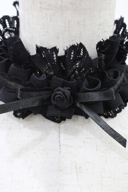 MARBLE / 2WAYサテンバラ付きタックプリーツチョーカー/ヘッドドレス ブラック×ブラック H-25-12-14-1002-GO-AC-KB-ZH