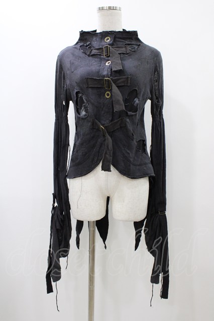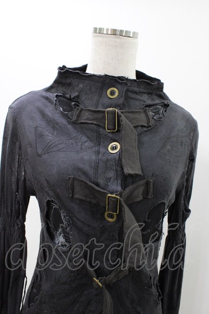 DARK RED RUM / ダメージ燕尾カーディガン グレー H-25-12-14-1018-HN-TO-KB-ZH
