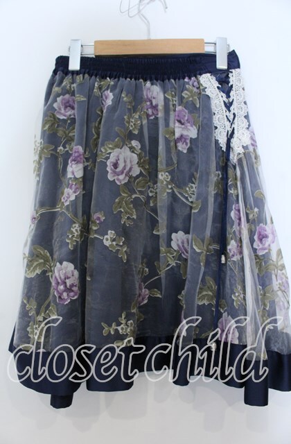 axes femme / 花柄オーガンジー重ねスカート ネイビー O-25-12-07-017-AX-SK-IG-OS
