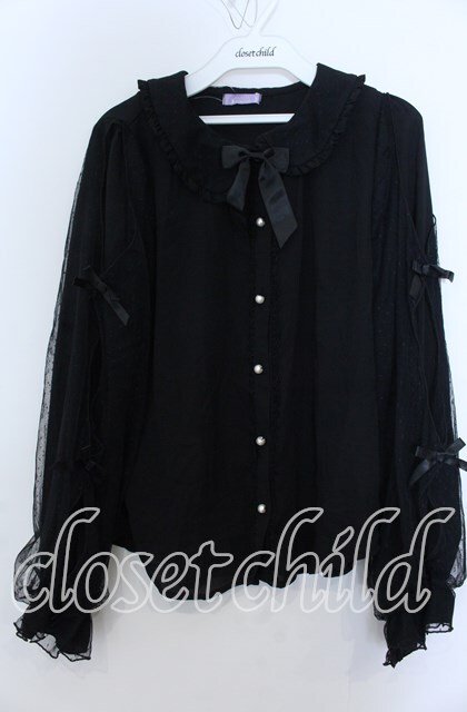 axes femme kawaii / ドットチュールブラウス M くろ O-25-12-07-026-AX-BL-IG-OS [2100080000067238-O-25-12-07-026-AX-BL-IG-OS]