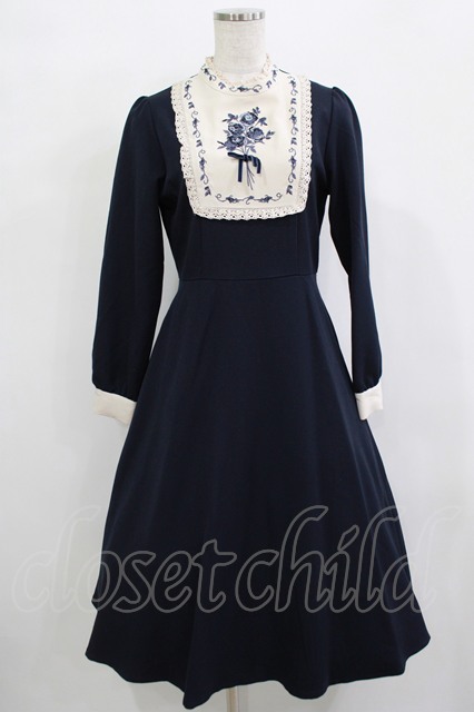 Fi.n.t / 絵画風ヨーク刺繍ワンピース Free NAVY H-25-12-13-1015-CA-OP-NS-ZH