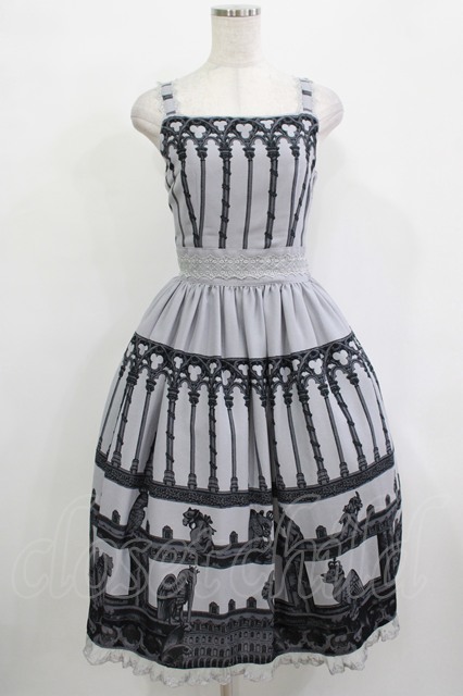 Innocent World / ノートルダムのガーゴイルウエストレースワンピース M/108cm丈 グレー H-25-12-13-1007-IW-OP-NS-ZH