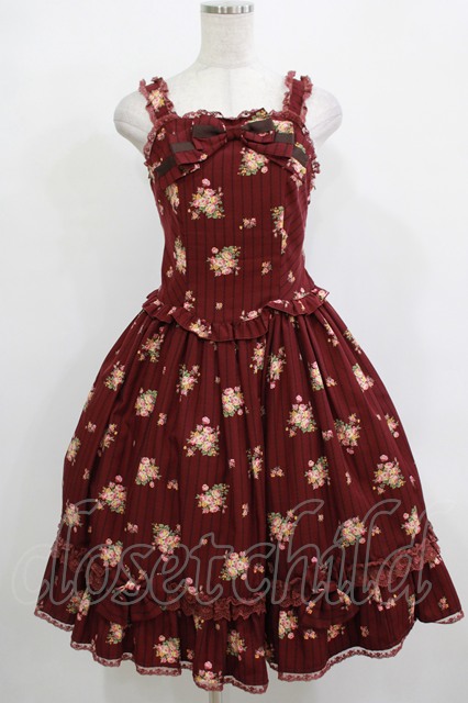 Innocent World / ブーケストライプリボンジャンパースカート Free ボルドー H-25-12-13-1008-IW-OP-NS-ZH