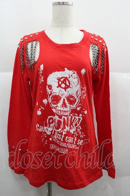 ACDC RAG / ドクロプリントチェーンカットソー 赤X白Xシルバー I-25-12-06-041-PU-TO-SA-ZI [2100060000044100-I-25-12-06-041-PU-TO-SA-ZI]