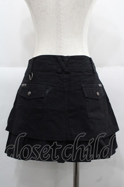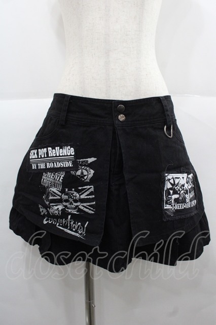 SEX POT ReVeNGe / ワッペンデザインプリーツスカート L 黒X白 I-25-12-06-099-SP-SK-SA-ZI [2100060000044097-I-25-12-06-099-SP-SK-SA-ZI]