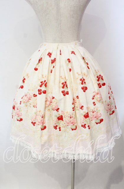 BABY,THE STARS SHINE BRIGHT / チェリーブーケ柄スカート アイボリー×ピンク O-25-12-08-018-BA-SK-OW-OS