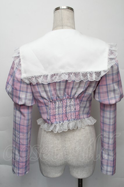 Ank Rouge / チェックプリンセススリーブトップス ピンク S-25-12-07-027-CA-TO-HR-ZS