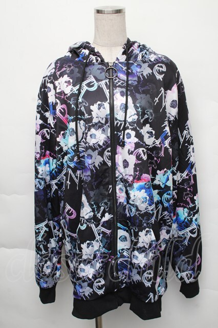 NieR Clothing / 裏ボア総柄ZIPパーカー 黒 S-25-12-07-034-PU-TO-KB-ZS