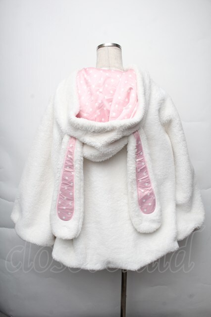 To Alice / ドットリボンもこもこうさ耳コート 白 S-25-12-07-046-LO-CO-HR-ZS
