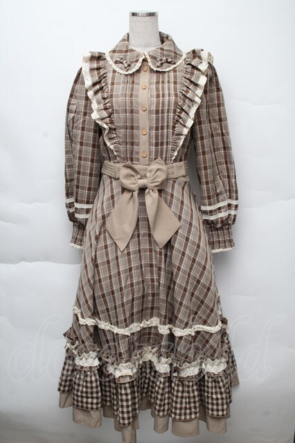 Hoshibako Works / テディ・エトワール フリルヨークチェックワンピース ブラウン S-25-12-07-054-LO-OP-AS-ZS [2100020000034815-S-25-12-07-054-LO-OP-AS-ZS]