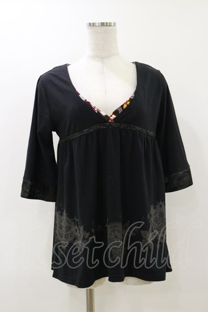 gouk / 裾プリントフレアカットソー ブラック H-25-12-17-063-GO-TO-KB-ZH