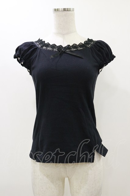 Emily Temple cute / レースリボンカットソー ブラック H-25-12-17-050-ET-TO-KB-ZH