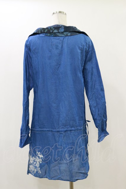 gouk / 和柄切替シャツチュニック 青 H-25-12-17-062-GO-TO-KB-ZH [2100030000080712-H-25-12-17-062-GO-TO-KB-ZH]