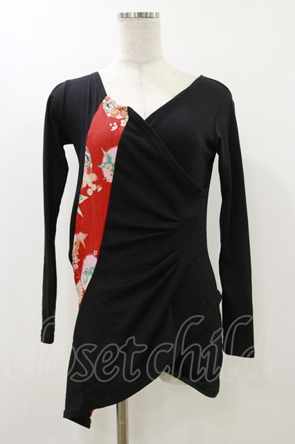 gouk / 和柄切替アシメタックカットソー ブラック H-25-12-17-064-GO-TO-KB-ZH [2100030000080710-H-25-12-17-064-GO-TO-KB-ZH]