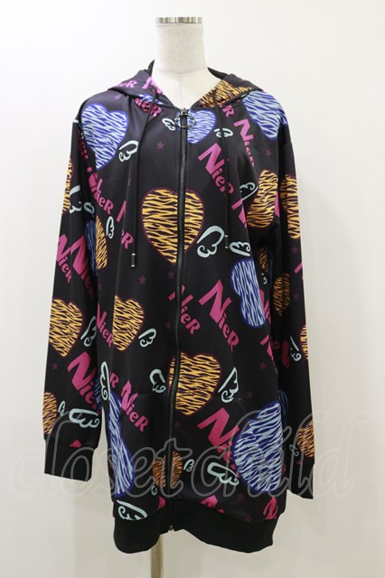 NieR Clothing / 総柄ZIPパーカー 黒 H-25-12-17-066-PU-TO-KB-ZH