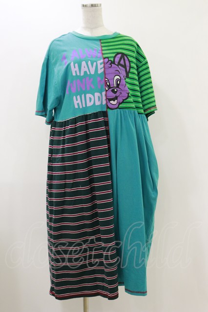 Candy Stripper / SILLY BEAR COMBINED TEEワンピース ターコイズ H-25-12-17-036-PU-OP-KB-ZH [2100030000080697-H-25-12-17-036-PU-OP-KB-ZH]
