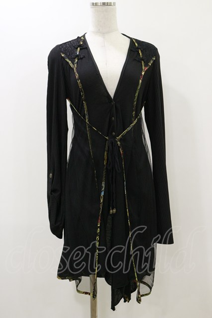 Ozz oneste / メッシュレイヤードロングカーディガン 黒 H-25-12-17-070-OO-TO-KB-ZH [2100030000060921-H-25-12-17-070-OO-TO-KB-ZH]