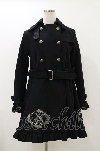 FRILL / 刺繍ダブルボタンコート ブラック H-25-12-17-057-HN-CO-KB-ZH [2100030000080705-H-25-12-17-057-HN-CO-KB-ZH]