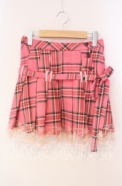 MILK / タータンチェックプリーツ巻きスカート ピンク O-25-12-09-004-ML-SK-IG-OS
