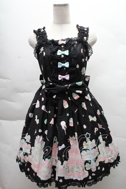 Angelic Pretty / Decoration Dream後ろフリルジャンパースカート 黒 S-25-12-08-047-AP-OP-AS-ZS [2100020000035046-S-25-12-08-047-AP-OP-AS-ZS]