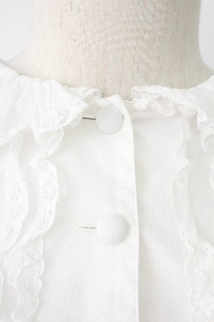INGEBORG / レース&ピンタックくるみボタンブラウス ホワイト T-25-12-17-001-LO-BL-SA-ZT