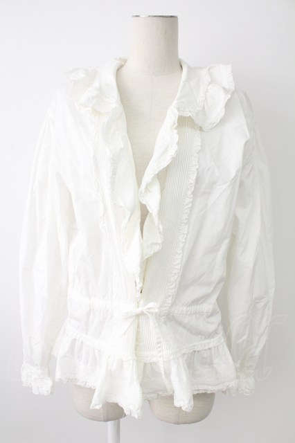 INGEBORG / 2つリボンノーカラー長袖ブラウス ホワイト T-25-12-17-002-LO-BL-SA-ZT [2100060000045289-T-25-12-17-002-LO-BL-SA-ZT]