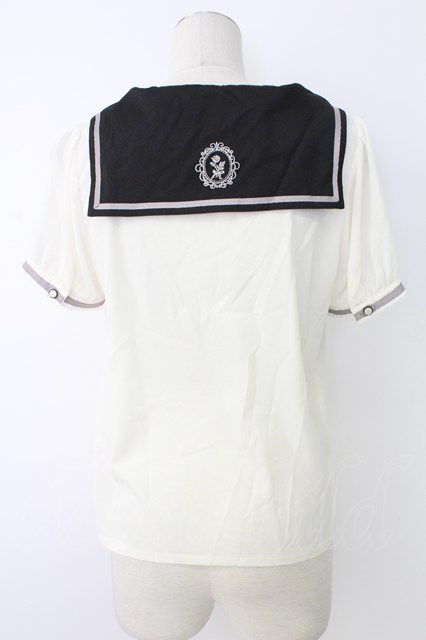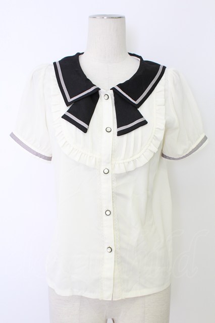 axes femme POETIQUE / セーラー半袖ブラウス アイボリーXネイビー T-25-12-17-010-AX-BL-SA-ZT